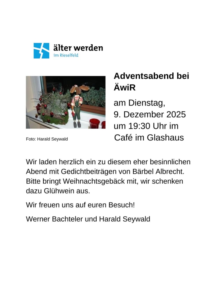 ÄwiR-Adventsabend am Di, 09.12. ab 19.30