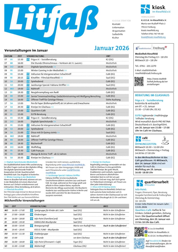 Das aktuelle Litfaß Januar ist da!19. Dezember 2025/in Aktuelles, KIOSK, Litfaß/von Stadtteilarbeit Unter kiosk.rieselfeld.org/aktuelles-veranstaltungsprogramm/ ist das aktuelle Litfaß zu finden! Mit dem aktuellen Text für den Screenreader! https://kiosk.rieselfeld.org/wp-content/uploads/01_Januar_Litfass_s_180.png 180 180 Stadtteilarbeit https://kiosk.rieselfeld.org/wp-content/uploads/logo_web.png Stadtteilarbeit2025-12-19 15:33:412025-12-19 15:33:44Das aktuelle Litfaß Januar ist da!