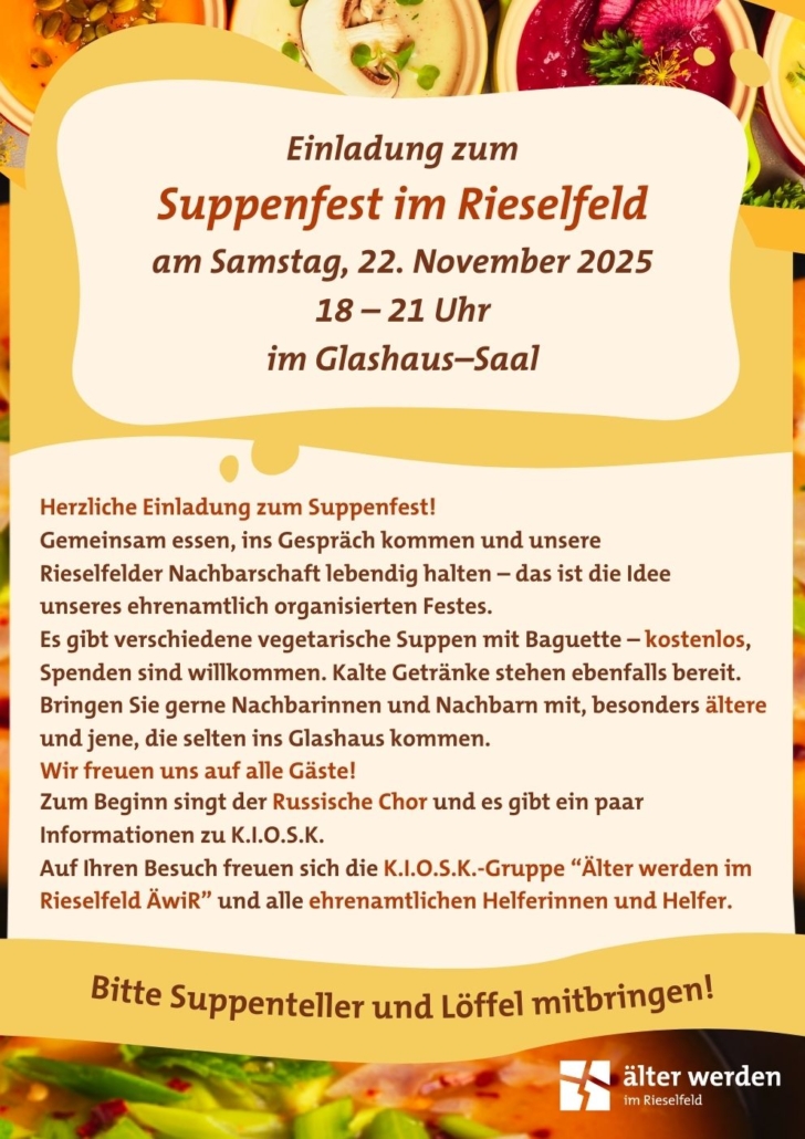 Auf Ihren Besuch freuen sich die K.I.O.S.K.-Gruppe „Älter werden im Rieselfeld ÄwiR, und alle ehrenamtlichen Helferinnen und Helfer.